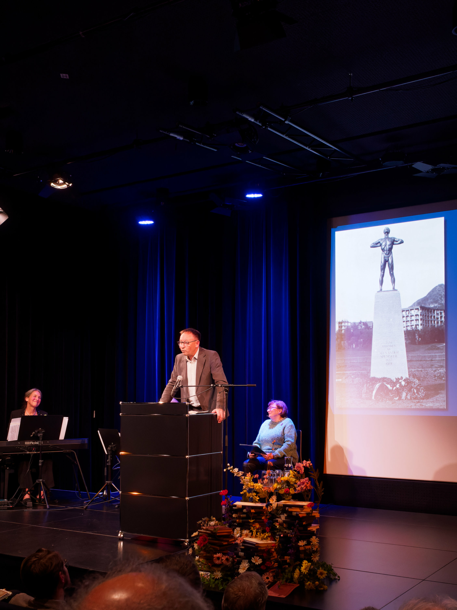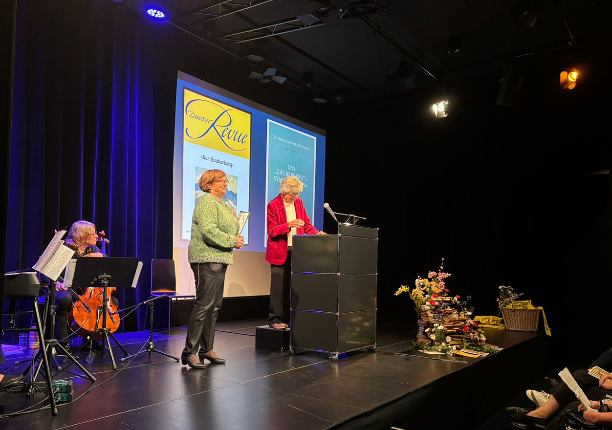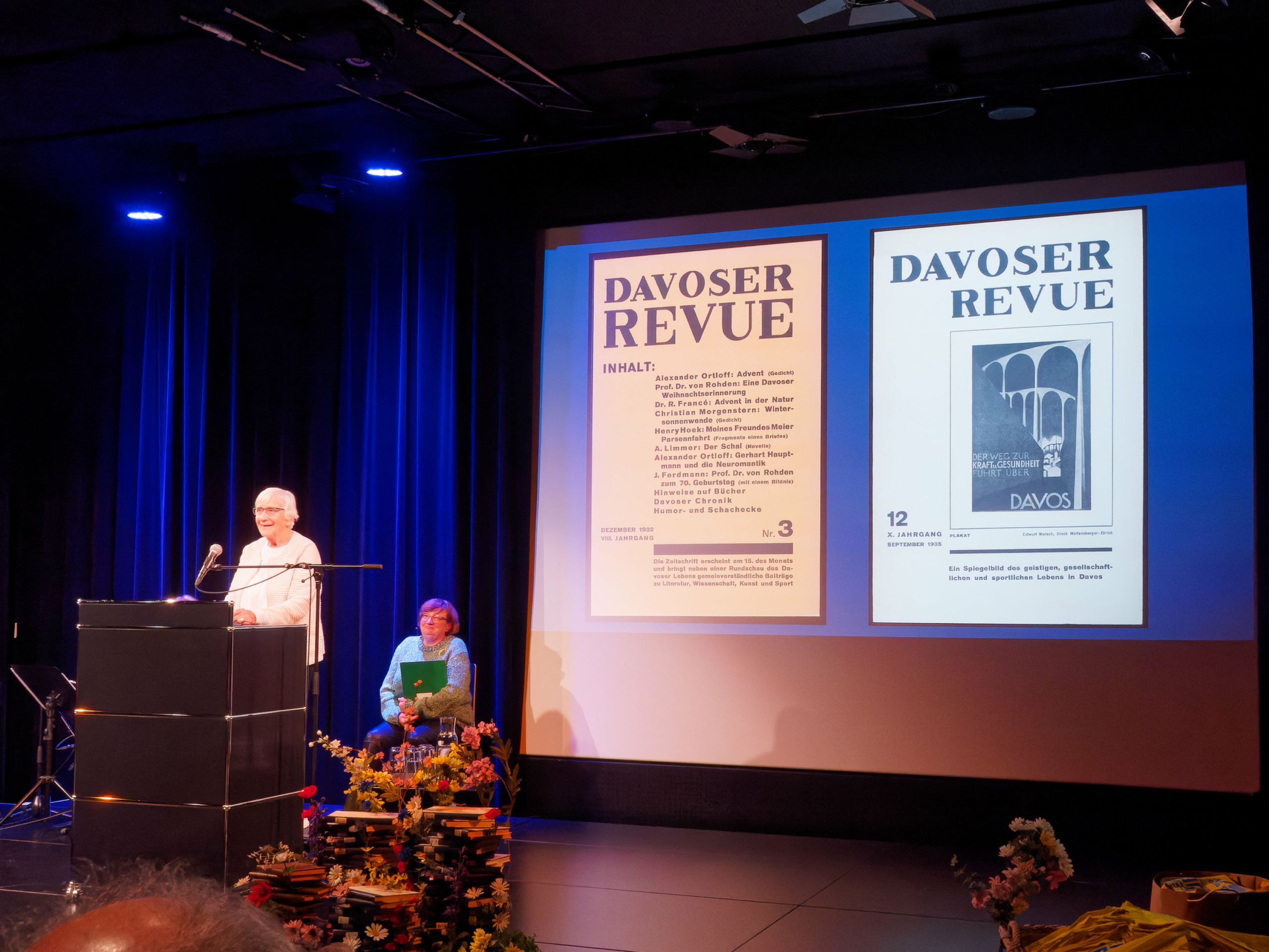 Vor vollen Rängen durften wir am 25. September 2025 im Kulturplatz Davos unsere Jubilarin feiern. Wir danken den Gratulanten, Landammann Philipp Wilhelm und Ursin Widmer, Leiter des kantonalen Amts für Kultur und blicken mit einem Bilderreigen auf ein wunderbares Fest voller Geschichten aus 10 Jahrzehnten, die uns, illustriert von Fotografien aus den Beständen der Dokumentationsbibliothek und musikalisch begleitet von Annegret Ernst (Klavier) und Marianne van Wijnkoop (Cello) von Thomas Gadmer, Lisa Meisser, Timothy Nelson, Annick Ryf, Elisabeth Mani-Heldstab, Peter Kradolfer, Urs Meisser, Elfriede Virchow, Katharina Schoop, Christoph Luzi, Nicole Bertsch-Schiessl und Helene Elmer dargebracht wurden. Mit Su Jost und Pascal Werner landeten wir schliesslich in der Gegenwart, die zum Jubiläum unsere Schatzkammer öffnet.